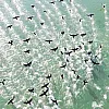 "Yıllardır buraya gelirim ama kuşların bu kadar kalabalık ve uyumlu hareket ettiğini nadir görürüm. Sabah saatlerinde geldik, suyun üzerinde sanki koşu yarışı yapıyor gibilerdi. Bir anda havalanıp gökyüzünü kapladılar, izlemesi gerçekten çok keyifliydi."