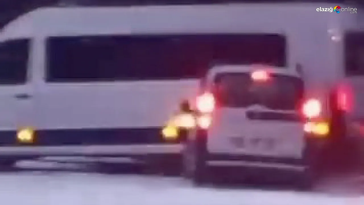 Elazığ'da etkisini artıran kar yağışı ve buzlanma, Beyzade Efendi Bulvarı'nda maddi hasarlı kazaya neden oldu. Kar kaplı yolda duramayan hafif ticari aracın minibüse arkadan çarptığı anlar vatandaş kamerasına yansıdı.