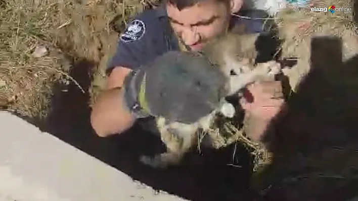 Elazığ'da kuyuya düşerek mahsur kalan yavru kedi, itfaiye ekiplerinin yoğun çalışmaları sonucu kurtarıldı.