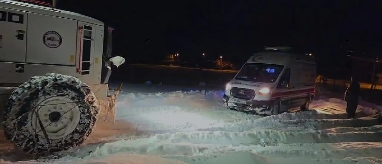 Elazığ'ın Karakoçan ilçesinde hasta almaya giden ambulans, kar ve buzlanma nedeniyle Aşağı Ovacık köyü yolunda mahsur kaldı. Elazığ İl Özel İdaresi ekiplerinin zamanla yarıştığı operasyonla kurtarılan sağlık ekipleri, hastayı güvenle hastaneye ulaştırdı.