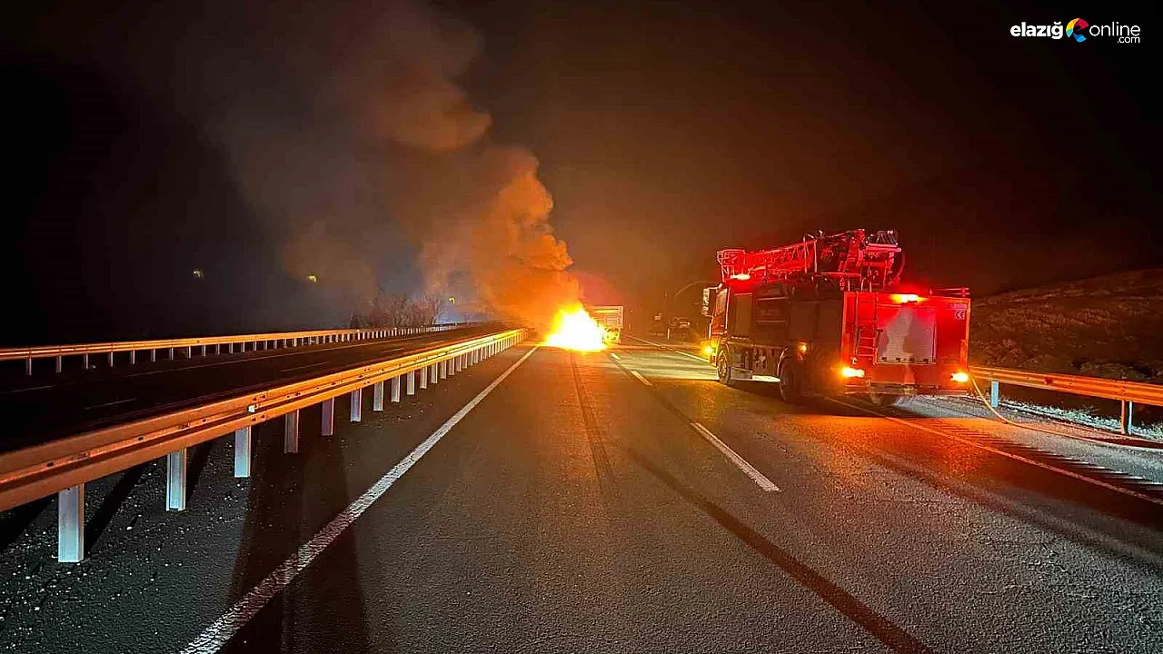 Elazığ’da gece saatlerinde Elazığ-Bingöl karayolu Elmapınarı köyü mevkiinde meydana gelen trafik kazasında bir otomobil, seyir halindeki traktörün römorkuna arkadan çarptı. Çarpmanın etkisiyle alev alan araç kısa sürede adeta alev topuna dönerken, kazada 2 kişi yaralandı.