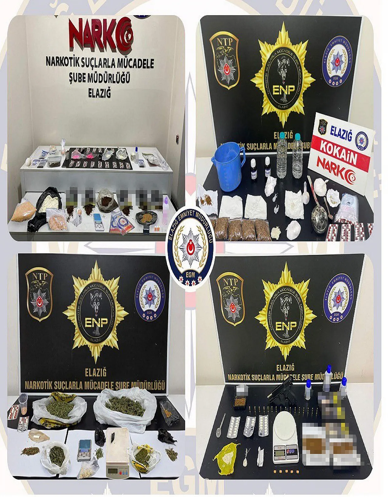 Elazığ emniyeti, kentin huzurunu kaçıran uyuşturucu tacirlerine yönelik operasyon düğmesine bastı. Narkotik Suçlarla Mücadele Şube Müdürlüğü koordinesinde yürütülen 20 günlük yoğun mesaide, uyuşturucu madde ticareti yapan ve kullanan şahıslara karşı adeta "süpürme" operasyonu yapıldı.
