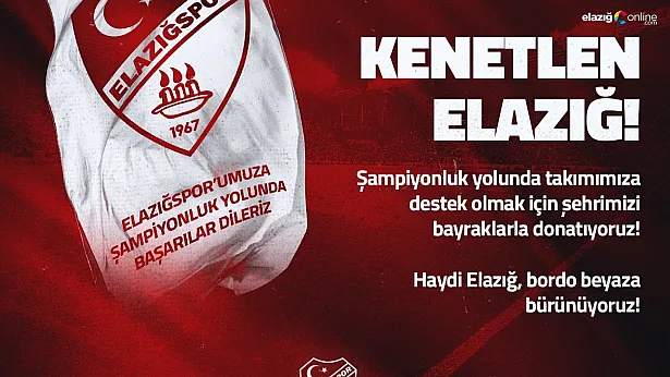 “Evimize, işyerimize, sokağımıza Elazığspor bayrağımızı asıyoruz! Şampiyonluk yolunda Elazığspor’umuza desteğimizi göstermek için hep birlikte harekete geçiyoruz. Bordo beyaz bayraklarımızla şehrimizi renklendiriyor, Elazığ’ın her köşesini Elazığspor’un renklerine boyuyoruz. Haydi Elazığ, bordo beyaza bürünme zamanı!”