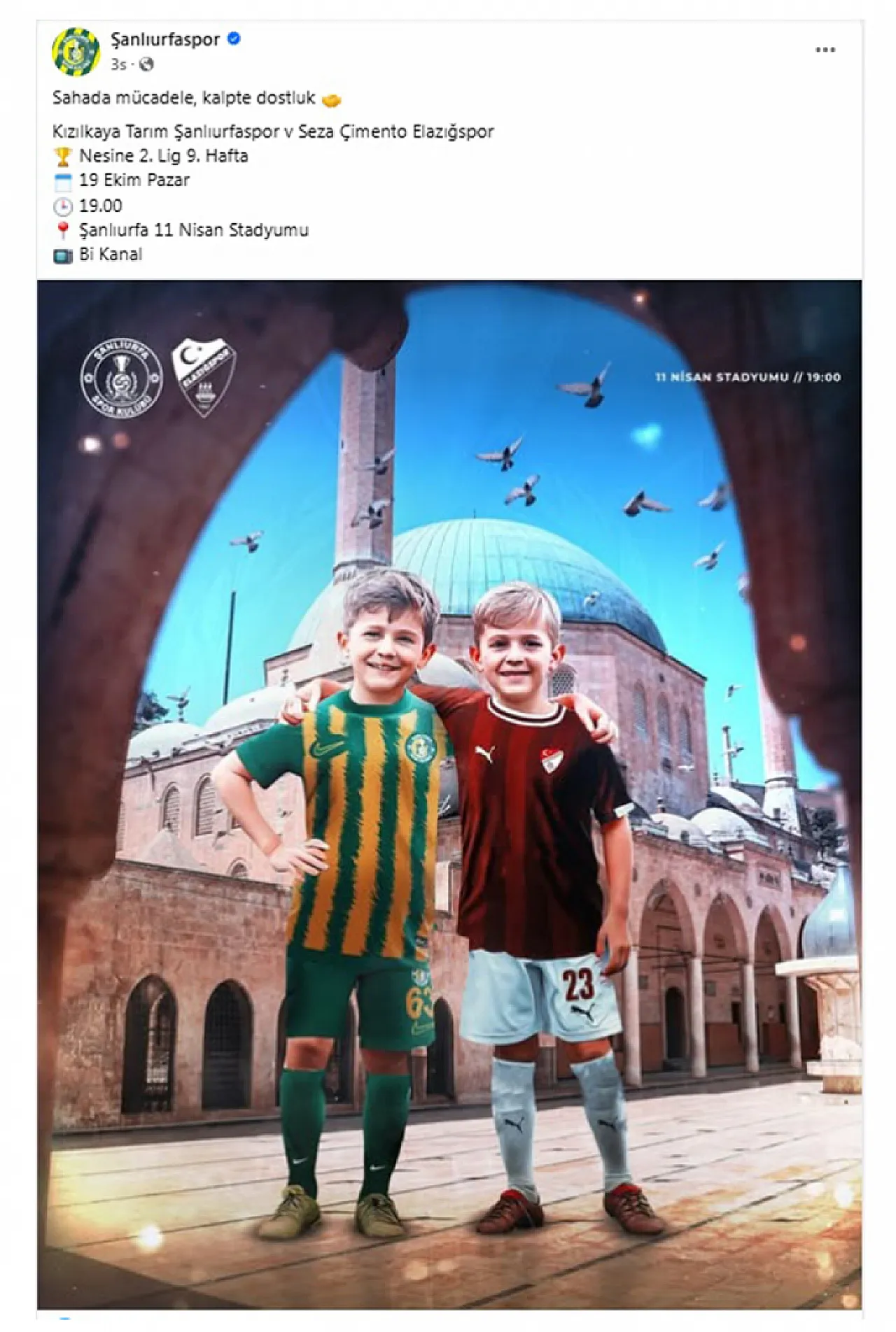 Nesine 2. Lig Beyaz Grup’un 9. haftasında Seza Çimento Elazığspor, deplasmanda Kızılkaya Tarım Şanlıurfaspor’a konuk olacak. Mücadele öncesi Şanlıurfaspor’un yaptığı paylaşım hem Elazığ hem de Şanlıurfa camialarında büyük beğeni topladı.