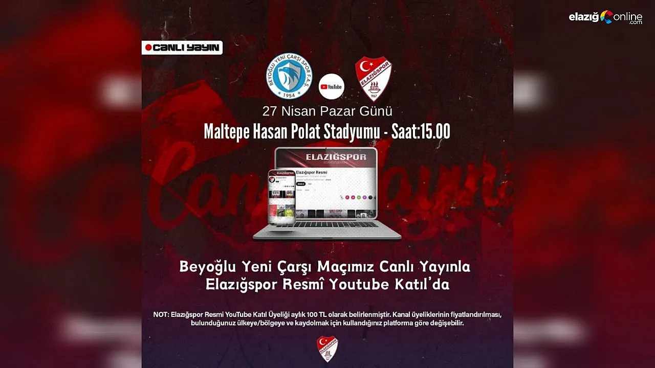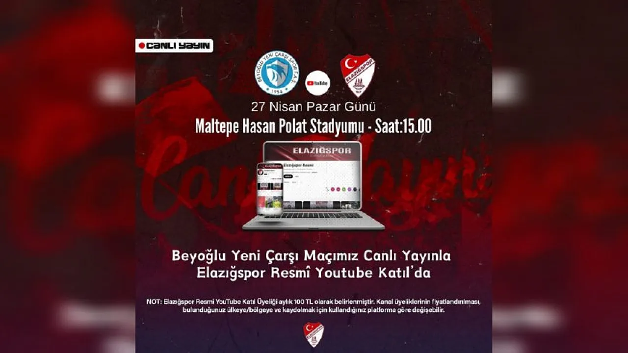 Elazığspor, Beyoğlu Yeni Çarşı Maçını Youtube Katıl Canlı Yayınla İzlenebilir Yapacak