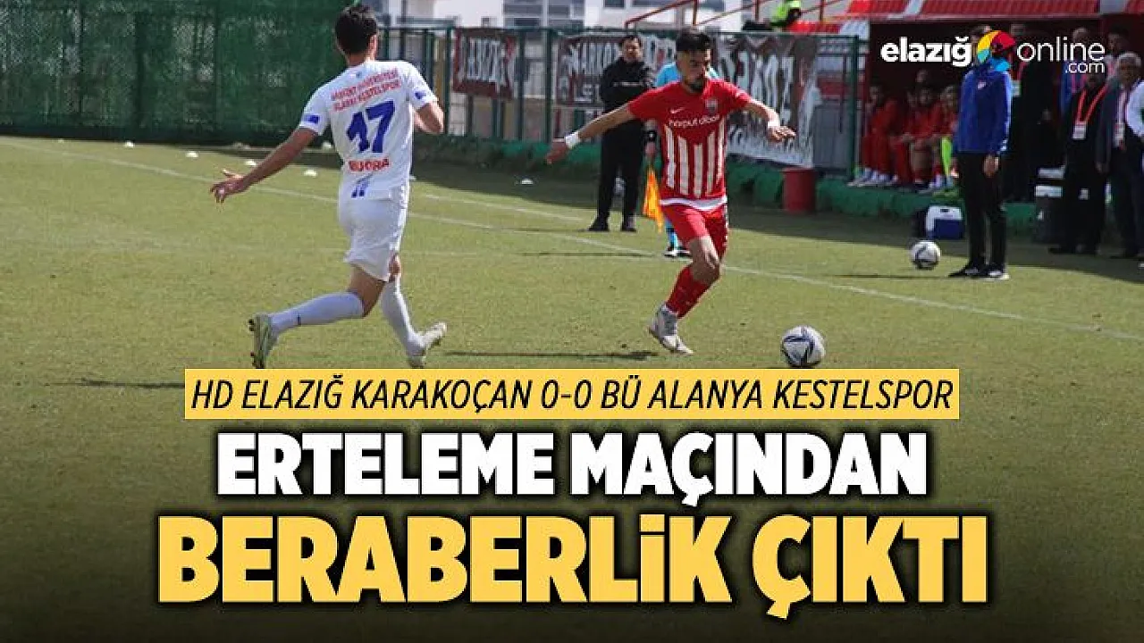 TFF 3. Lig 2. Grup 22. hafta erteleme maçında HD Elazığ Karakoçan FK, sahasında BÜ Alanya Kestelspor'la 0-0 berabere kaldı.