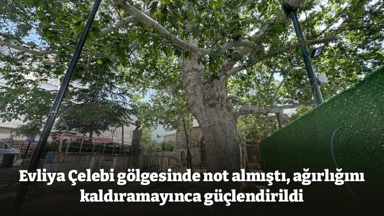 Harput Mahallesi’ndeki Kurşunlu Camii avlusunda bulunan ve Evliya Çelebi’nin gölgesinde oturarak notlar aldığı bilinen 300 yıllık çınar ağacının dalları, kırılmaması için demirlerle desteklendi.