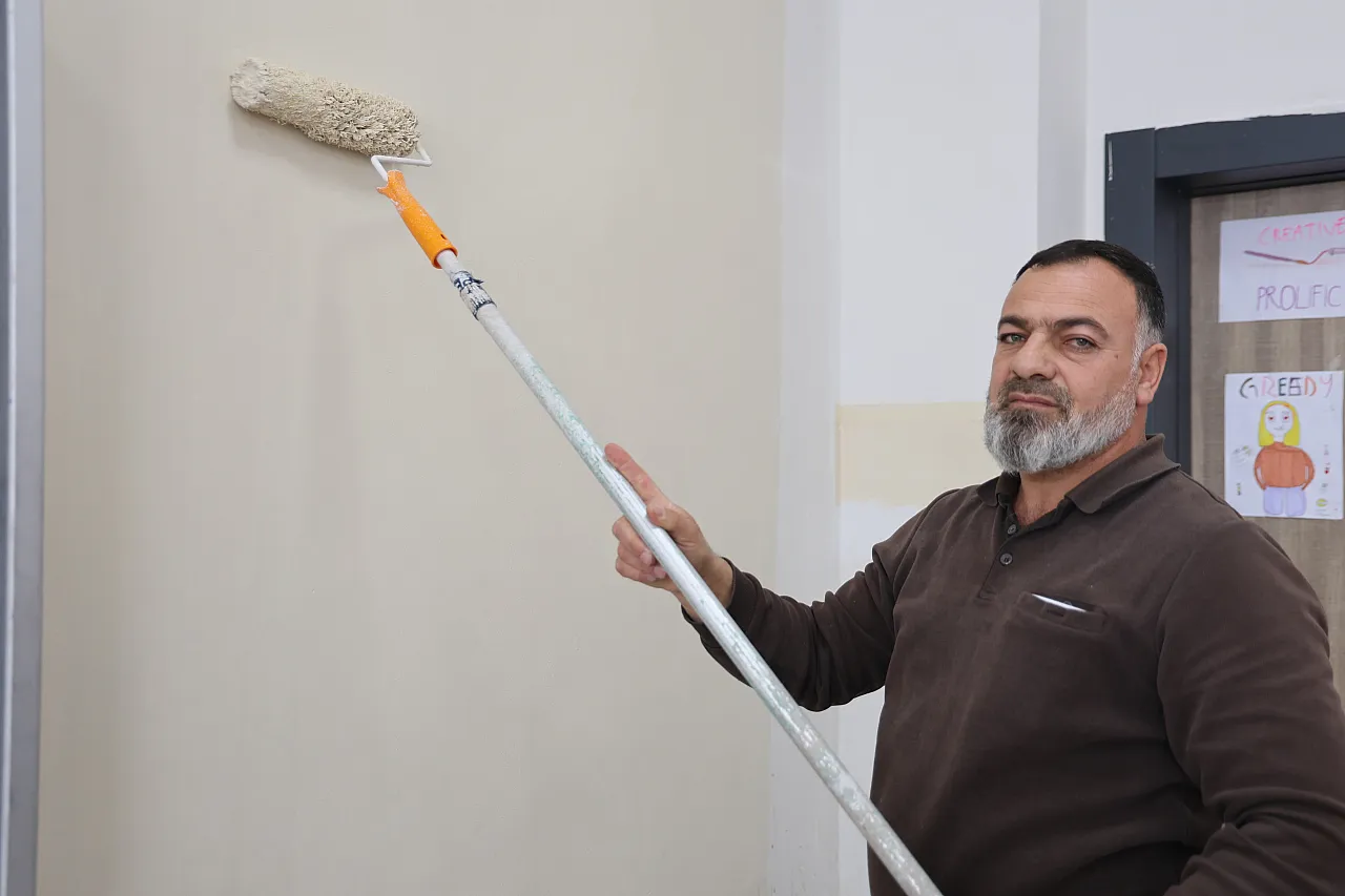 Yaklaşık 8 gün sürecek yoğun bir çalışma takvimi belirleyen baba Alan, tatil bitip zil çaldığında öğrencilerin tertemiz bir okulda ders başı yapmasını hedefliyor.