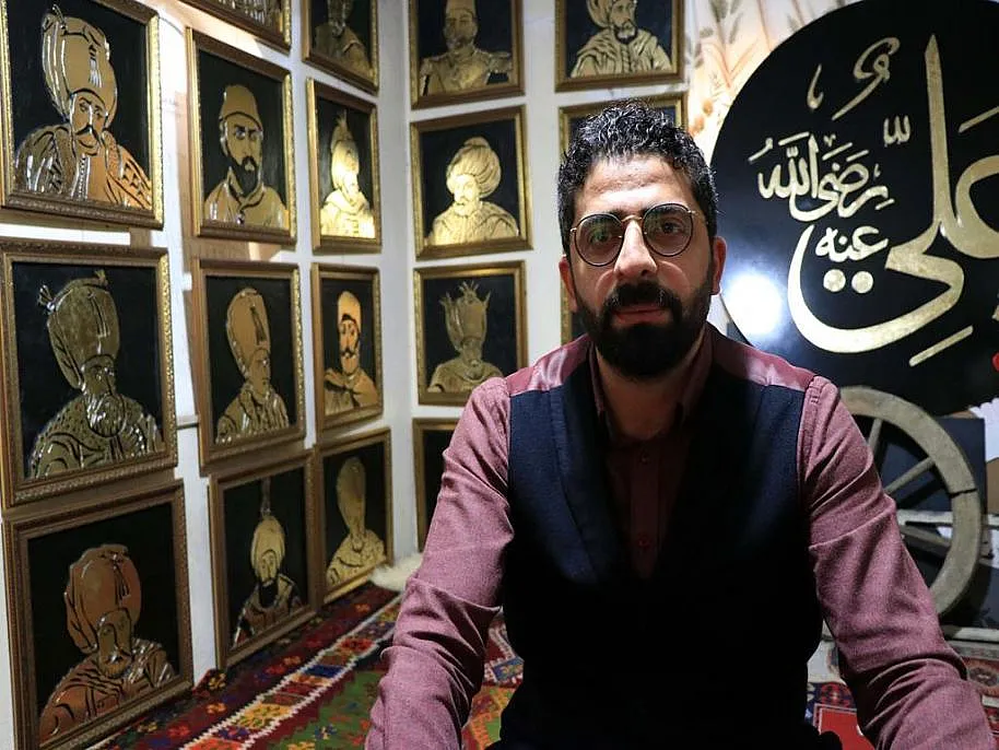 Elazığ'da yaşayan 36 yaşındaki Fatih Bakır, ahşap oyma sanatını varak ile birleştirerek Osmanlı padişahlarının tablosunu hazırladı.