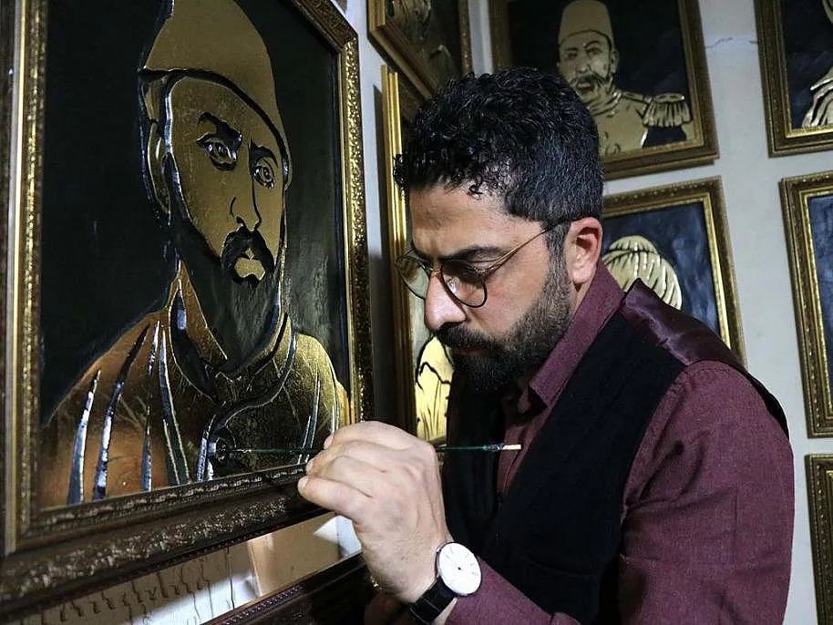 36 Osmanlı padişahının resmini varak sanatıyla ahşaba resmetti