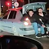 Bagajda oturan ve araçları bu şekilde çeken şahıslar, hem kendi can güvenliklerini tehlikeye attı hem de karayolunda ciddi bir risk oluşturdu. Bu tehlikeli anlar, yoldan geçen diğer sürücüler tarafından cep telefonu kamerasıyla kaydedildi.