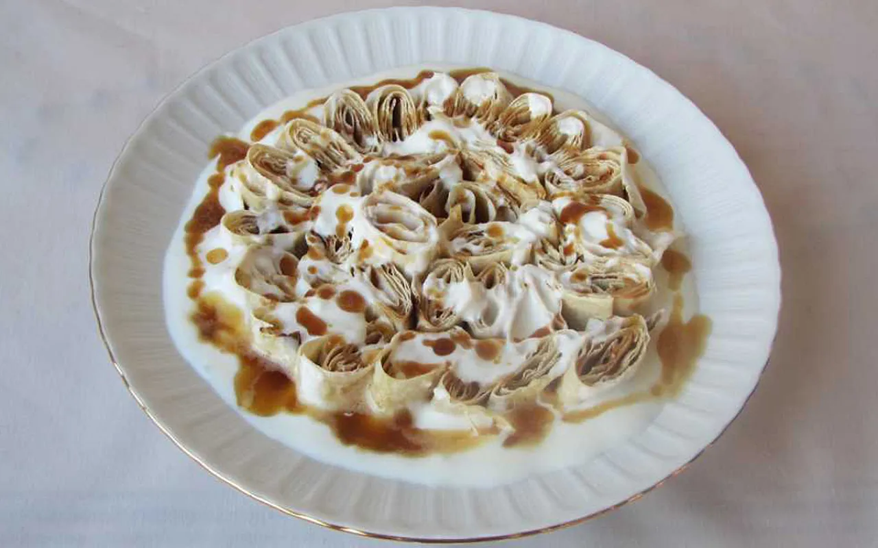 İncecik açılmış yufkaların rulo yapılıp kesilmesiyle hazırlanan Sırın, üzerine dökülen sarımsaklı yoğurt ve kızdırılmış tereyağı ile tam bir ziyafettir. Pratik görünse de yufkanın kıvamı ustalığın merkezindedir.