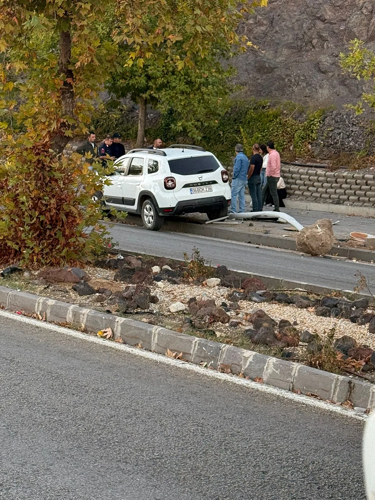 Kaza sonrası olay yerine gelen vatandaşlar ve yetkililer, durumu değerlendirmek üzere araç çevresinde toplandı. Kazada can kaybı ya da ciddi bir yaralanmanın olmadığı bildirildi. Ancak araçta ve yol altyapısında maddi hasar oluştuğu gözlemlendi.