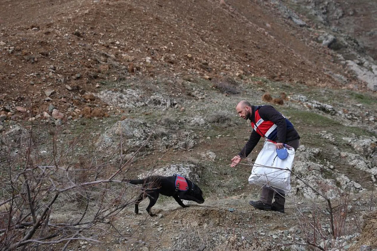 Aramaların kara bölümü oldukça titiz ilerliyor. İl Jandarma Komutanlığı Asayiş Şube Müdürlüğü’ne bağlı iz takip köpeği "Salkım", Kaya’ya ait özel eşyalardan alınan kokularla sahada hummalı bir çalışma yürütüyor. Salkım, yaşlı adamın evden ayrıldıktan sonra izlemiş olabileceği rotayı didik didik ediyor.