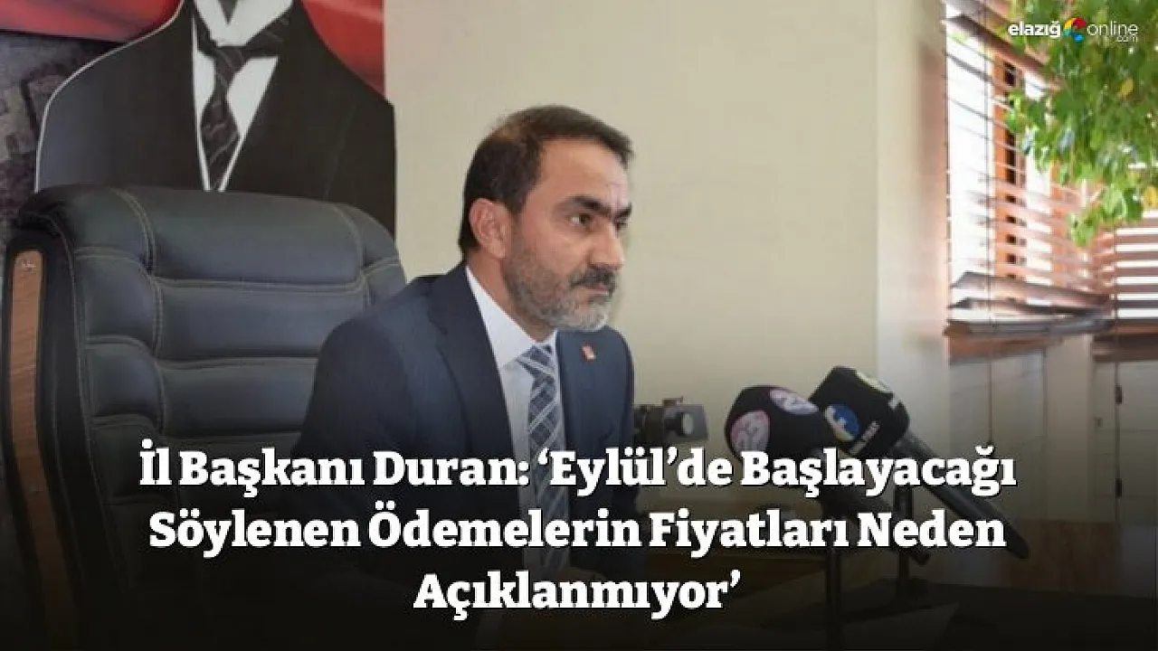 - İl Başkanı Duran: 'Eylül'de Başlayacağı Söylenen Ödemelerin Fiyatları Neden Açıklanmıyor'
