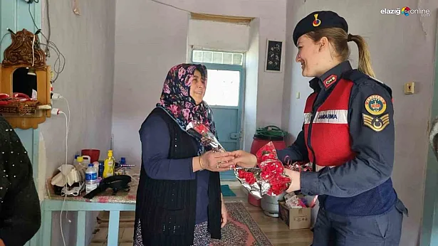 Elazığ İl Jandarma Komutanlığına bağlı ekipler, 8 Mart Dünya Kadınlar Günü’nün depremzede kadınları unutmadı.