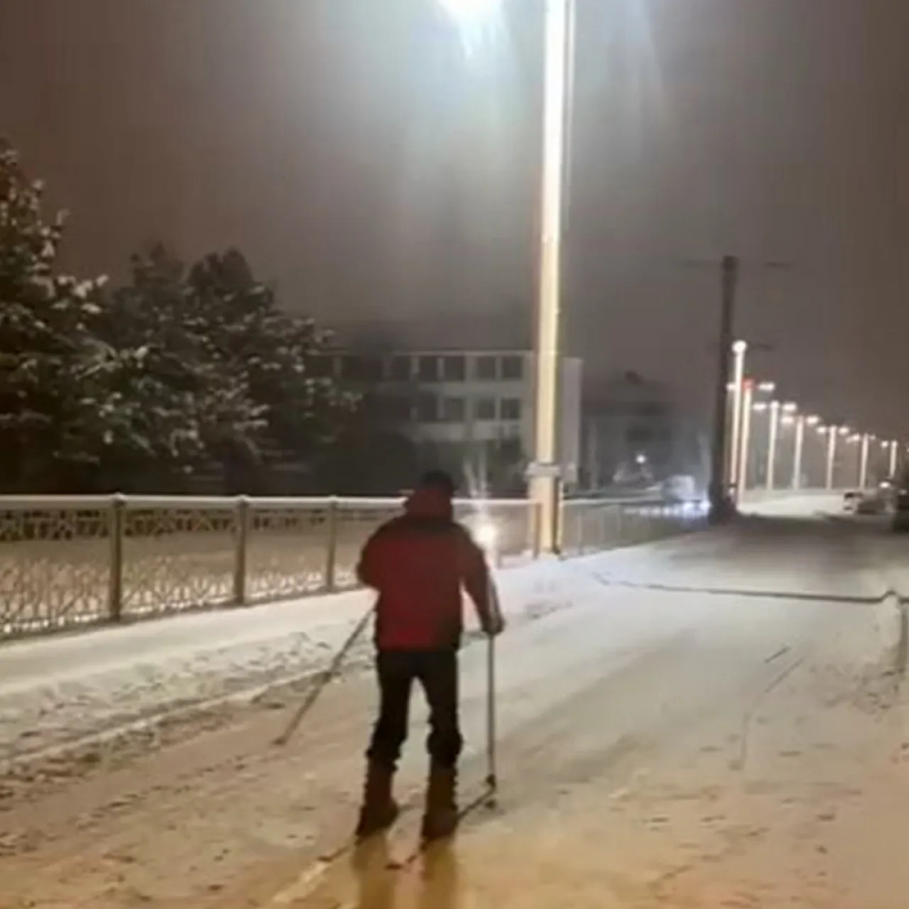 Kayak merkezine gitmek yerine şehrin göbeğinde kayak yapmayı tercih eden vatandaşın rahat tavırları dikkat çekti. Profesyonel ekipmanlarıyla caddede süzülen gizemli kayakçıyı görenler, o anları cep telefonu kameralarıyla saniye saniye kaydetti. Araç trafiğinin seyrek olduğu dakikalarda gerçekleşen bu sıra dışı etkinlik, kısa sürede sosyal medya platformlarında günün en çok konuşulan videosu haline geldi.
