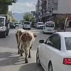 İlçenin en işlek caddelerinde gezen inekler, sürücülerin ilerlemesini güçleştirdi. Bazı araçlar durmak zorunda kalırken, vatandaşlar cep telefonlarıyla bu ilginç anları görüntüledi. Kısa sürede sosyal medyada paylaşılan görüntüler, büyük ilgi gördü.