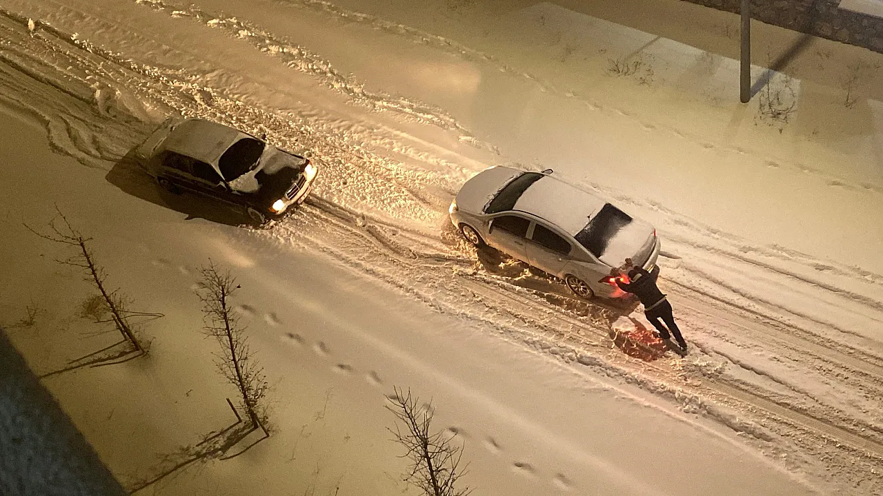 Birçok noktada benzer manzaralar yaşanırken, yolda mahsur kalan araçları itmek için kısa sürede gruplar oluştu. Yardıma koşan vatandaşlar arasında sadece erkeklerin değil, kadınların da yer alması dikkatlerden kaçmadı. El birliğiyle kardan kurtarılan araçlar yoluna devam ederken, vatandaşların bu dayanışması trafiğin tamamen felç olmasını engelledi.