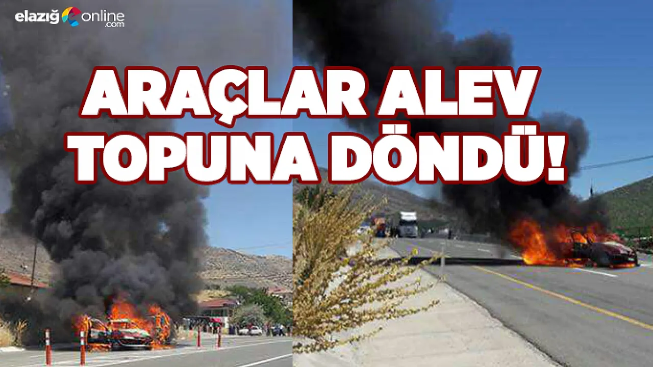 Elazığ'da meydana gelen trafik kazasında araçlar alev topuna dönerken bir kişi de yaralandı.