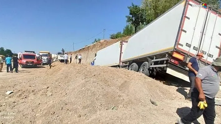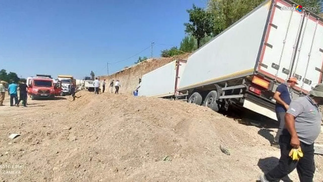 Elazığ'da sürücüsünün kontrolünden çıkan tır, kum birikintisine girdi. Kazada bir kişi hafif yaralandı.