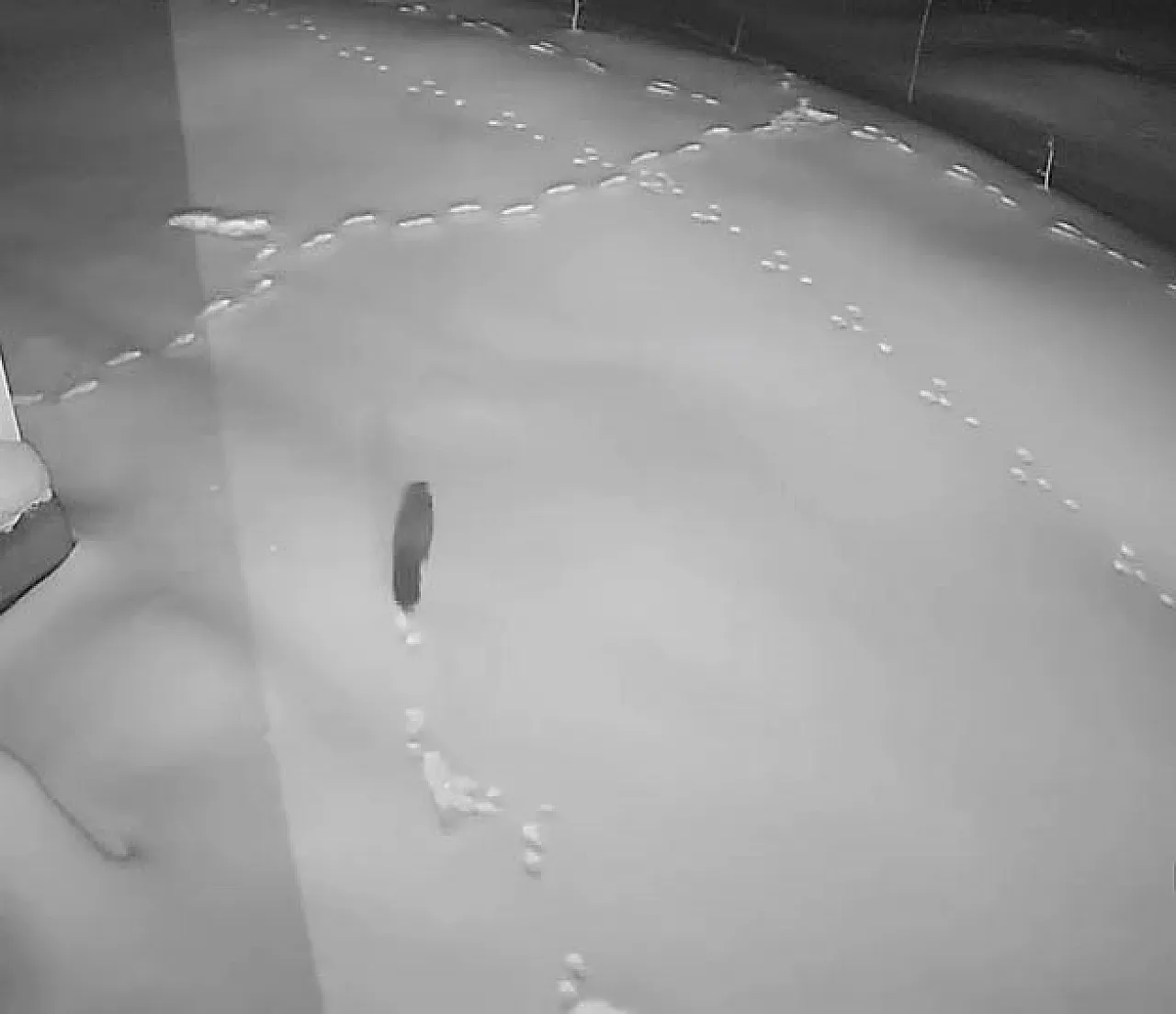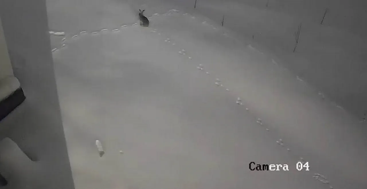 Köydeki bir evin güvenlik kamerasına yansıyan görüntülerde; önce bir tilkinin çevreyi kolaçan ederek yiyecek aradığı, ardından bir tavşan ve sansarın karla kaplı bahçede dolaştığı görülüyor. Hayvanların bir süre kapı önlerinde gezindikten sonra karın karanlığında gözden kaybolması, bölgedeki kış şartlarının ağırlığını gözler önüne seriyor.