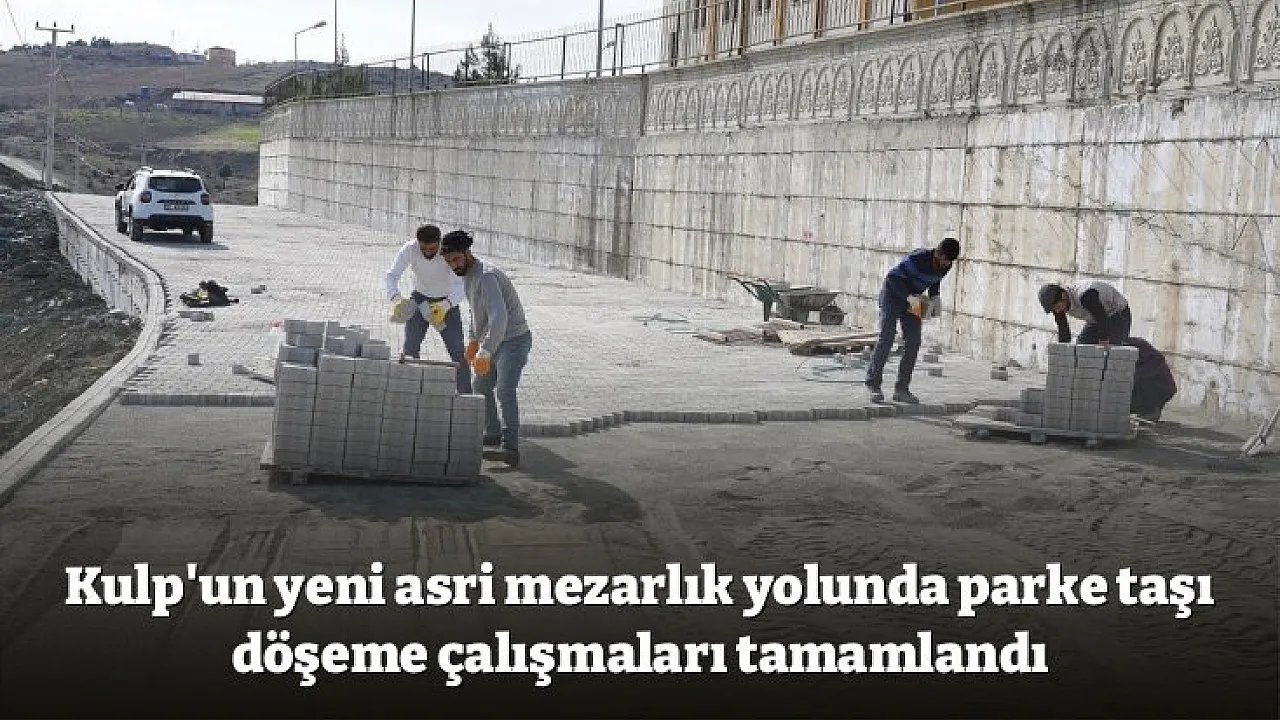 Diyarbakır Büyükşehir Belediyesi ile Kulp Belediyesi işbirliğiyle Kulp Yeni Asri Mezarlığına ait yolda başlatılan kilitli parke taşı döşeme çalışmaları tamamlanarak vatandaşların hizmetine sunuldu.