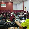 İl Emniyet Müdürlüğü yerleşkesinde düzenlenen toplantıda sürücülere trafik güvenliği yolcu taşımacılığı ve emniyet kemeri konularında bilgiler verildi.