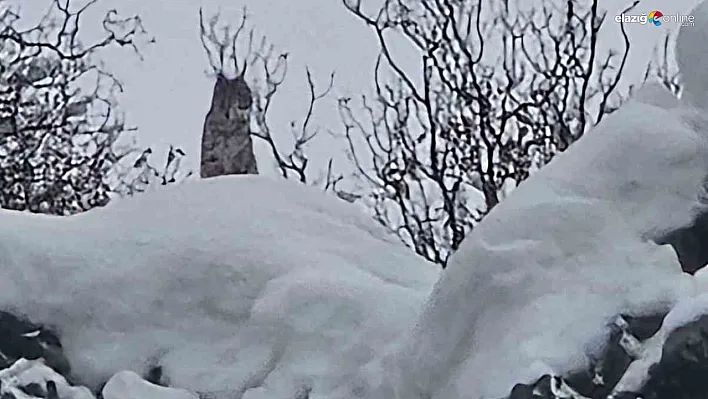 Elazığ'ın Karakoçan ilçesinde, doğada görülmesi oldukça zor olan ve 'ormanının hayaleti' olarak adlandırılan vaşak, karlar arasında süzülürken objektiflere yansıdı. Nesli tükenme tehlikesi altındaki bu nadir türün rahat tavırları dikkat çekti.