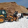 Jandarma ekipleri kazayla ilgili inceleme yaparken, şarampole yayılan tonlarca tuzun toplanması için çalışma başlatıldı.