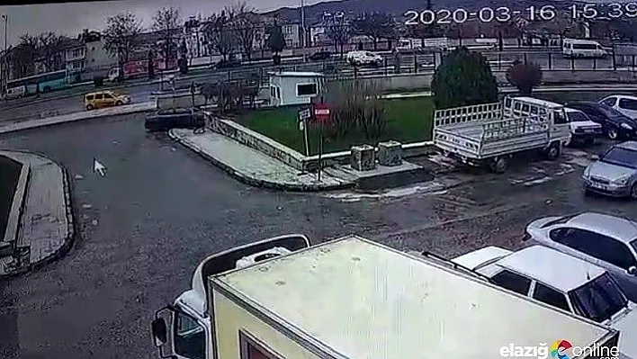 Elazığ'da 5 kişinin yaralandığı kazada, otomobilin güvenlik kulübesine girip sürüklediği anlar güvenlik kamerasına yansıdı.