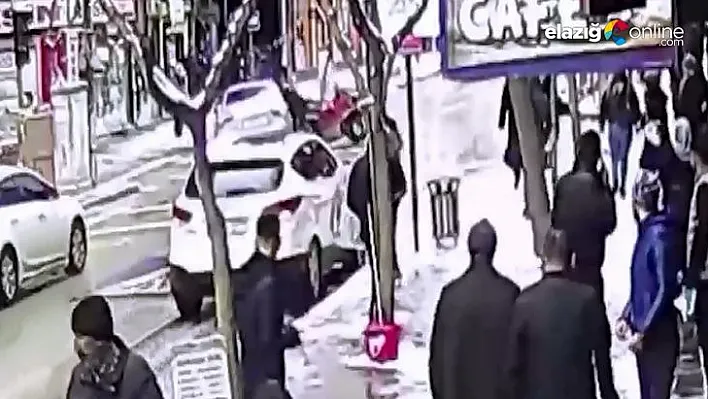 Edinilen bilgiye göre, Gazi Caddesi’nde seyir eden otomobil, ara sokaktan ana caddeye dönmek isteyen sepetli motora çarptı. Çarpmanın etkisiyle motosiklet sürücüsü yola fırlarken, kazayı gören vatandaşlar durumu sağlık ekiplerine haber verdi. Olay yerine gelen sağlık ekipleri tarafından ilk müdahalesi yapılan sürücü, ambulansla Fırat Üniversitesi Hastanesi’ne kaldırılarak tedavi altına alındı. Kaza bir iş yerinin güvenlik kamerasına saniye saniye yansıdı.