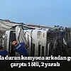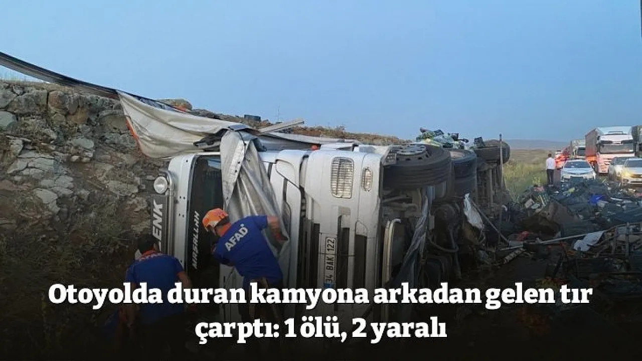 Otoyolda duran kamyona arkadan gelen tır çarptı: 1 ölü, 2 yaralı