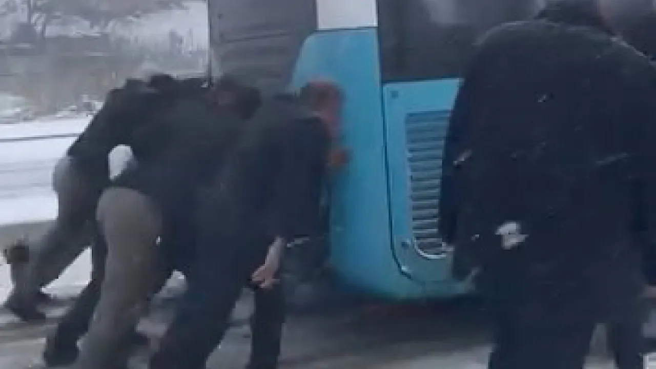 Otobüsün içinde bulunan yolcuların endişeli bakışları arasında devam eden kurtarma çalışması, yaklaşık yarım saat sürdü. Kar lastiği olmasına rağmen yoğun birikinti nedeniyle tutunma kaybı yaşayan araç, vatandaşların koordineli müdahalesiyle saplandığı noktadan kurtarıldı. Yolun yeniden trafiğe açılmasını sağlayan bu dayanışma örneği, sosyal medyada paylaşıldıktan sonra büyük beğeni topladı.