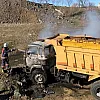 Ekiplerin çalışması ile söndürülen kamyonda maddi hasar meydana geldi.