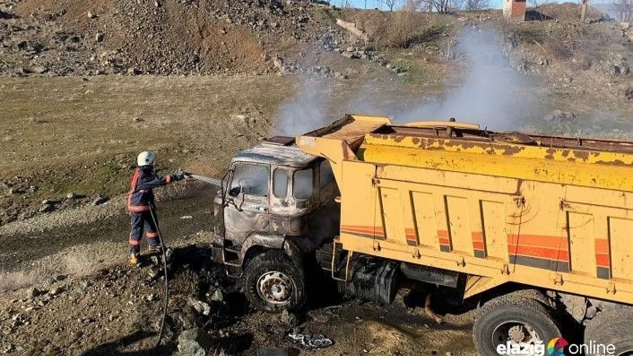Elazığ'da park halindeki kamyon yandı.