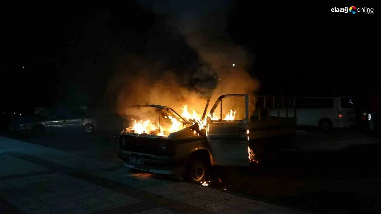 Malatya'da Şehirler Arası Otobüs Terminali'nde park halinde bulunan bir kamyonet alev alev yandı.