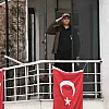 Şehit annesinin bu görüntülerini sosyal medyadan izleyen Tunceli’nin Çemişgezek ilçesinde yaşayan 14 yaşındaki Yunus Emre Akın, anne Karaca’nın çağrısına kayıtsız kalmadı. Akın, çağrıyı gördüğü anda evinin balkonuna Türk bayrağı asarak iki dakika boyunca saygı duruşunda bulundu.