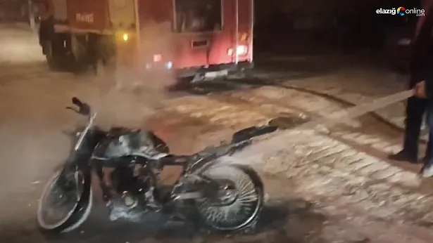 Elazığ'ın Doğukent Mahallesi'nde bir motosiklet, seyir halindeyken aniden alev aldı, yaşanan yangın anı sürücü ve çevredekileri paniğe sürükledi.
