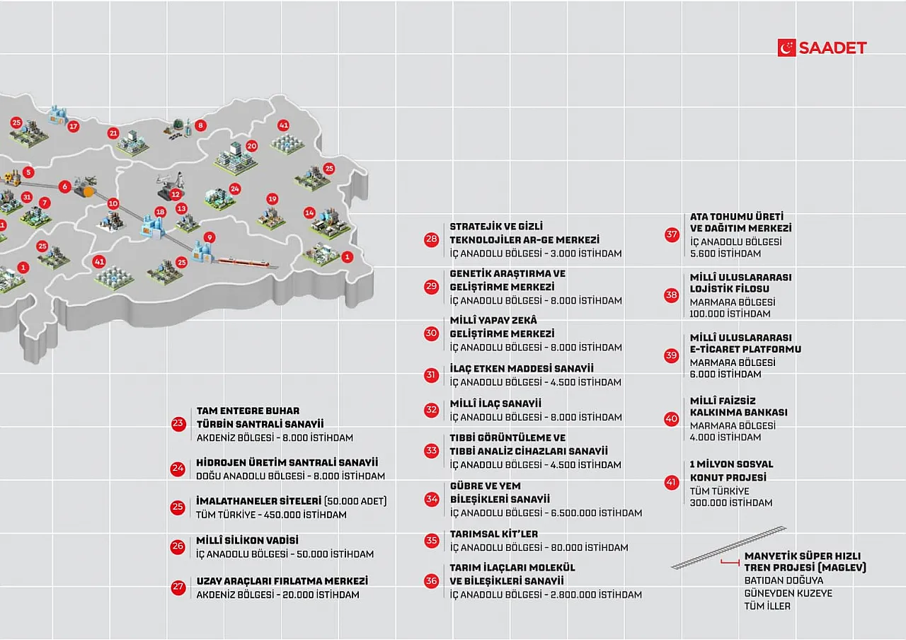 Elazığ siyasetinde saha çalışmaları hız kazanırken, Saadet Partisi il yönetimi farklı bir stratejiyle vatandaşın kapısını çaldı. Genel merkez mutfağında hazırlanan ve 2,5 milyon kişiye yeni iş imkânı sağlamayı hedefleyen "41 Master Proje", kentin en işlek mahallelerinde doğrudan halka anlatıldı. İzzetpaşa, Çarşı, İcadiye, Kültür, Nailbey ve Doğukent mahallelerinde gün boyu süren çalışmalarda, partililer broşürler eşliğinde ekonomik kurtuluş reçetesini paylaştı.