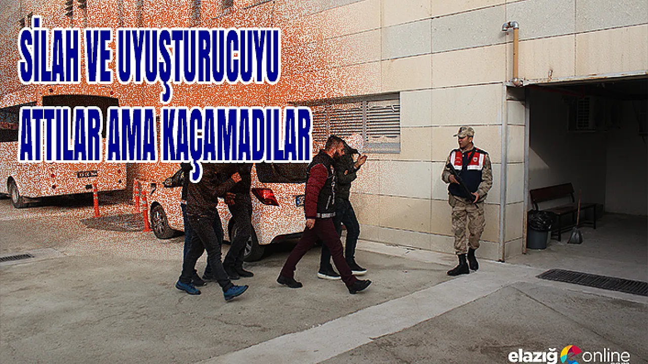 Elazığ'da polisin yaptığı "Şok" uygulamada araçla kaçarken silah ve uyuşturucuyu atan 3 şüpheli saklandıkları bir binada yakalandı.