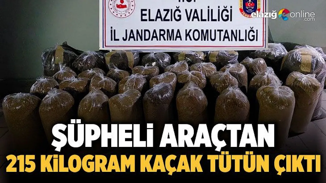 Elazığ'da jandarma ekiplerinin yaptığı operasyonda, 215 kilogram kaçak tütün ele geçirildi.