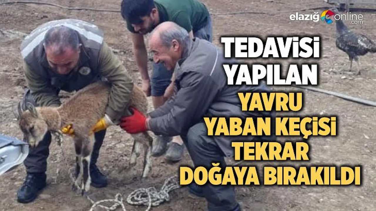 Arazide bitkin halde yavru bir yaban keçisi bulan köylüler, durumu Doğa Koruma Milli Parklar Elazığ Şubesi ekiplerine bildirdi. Ekipler, olay yerine giderek yavruyu alıp Fırat Üniversitesi Hayvan Hastanesi’ne götürdü. Tedavi altına alınan yavru yaban keçisi, iyileştikten sonra ekipler tarafından tekrar doğal yaşam alanına bırakıldı.