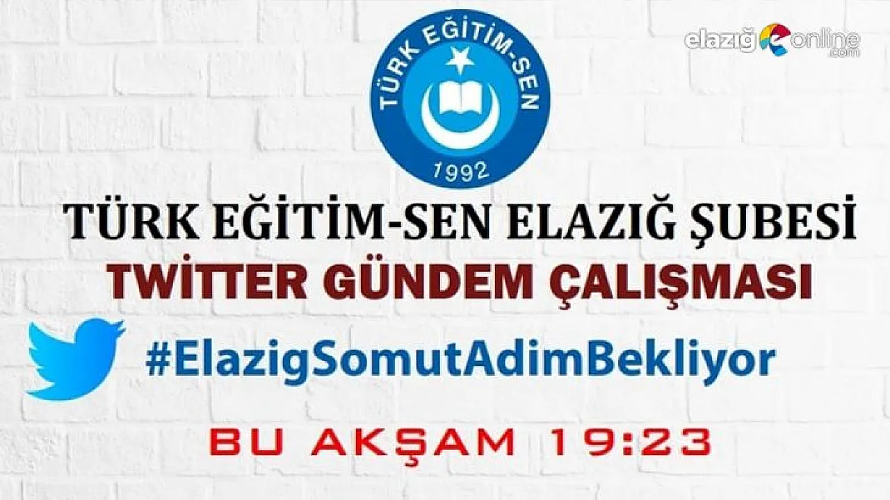 Türk Eğitim-Sen Elazığ Şubesi'nden #ElazigSomutAdimBekliyor başlığıyla sosyal medya platformu twitter da gündem çalışması yapacak.