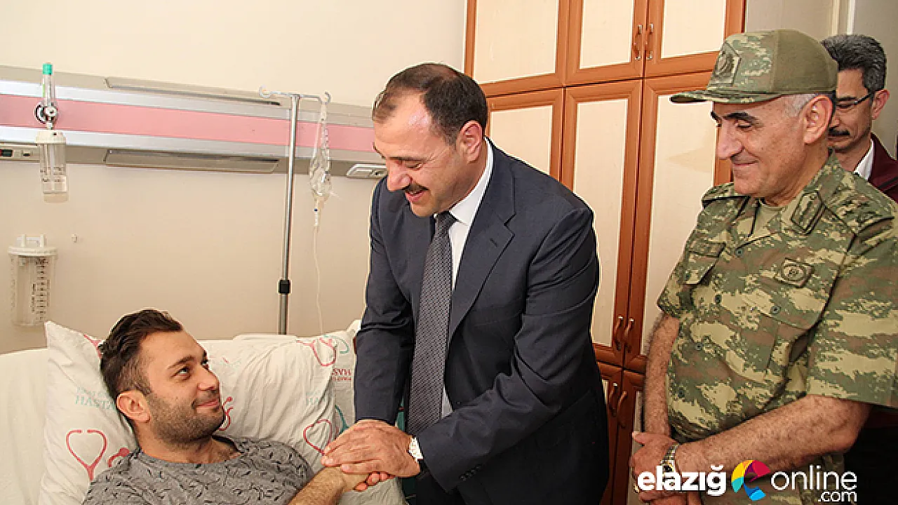 Elazığ Valisi Çetin Oktay Kaldırım, Tunceli'de mayına basarak yaralanan gaziyi hastanede ziyaret etti.