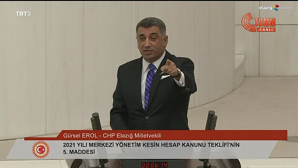 5’inci madde üzerine söz alan CHP Elazığ Milletvekili Gürsel Erol şunları söyledi: "Önemli olan büyük bütçeler yönetmek değil, önemli olan her yurttaşımızın yasal haklarının teminatı olmak, önemli olan büyük bütçeler yönetmek değil, önemli olan büyük projelere imza atmak değil. Önemli olan yurttaşlarınızın anayasal yurttaşlık haklarını korumak, özgürlük alanlarını aşmak, her yurttaşımızın yasal haklarının teminatı olmak. Sayın Recep Tayyip Erdoğan, 2001 yılında partisini kurarken özellikle yasaklar, yokluk ve yolsuzluk ile ilgili Türkiye’ye bir çıkış yaptı. Vatandaşta inandı oyunu verdi. O günden bugüne kadarda ülkemizin başında dönem dönem başbakan, dönem dönem cumhurbaşkanı olarak görev yapmakta." Şeklinde konuştu.