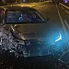 Yolda savrulan otomobil bariyerlere çarparak durdurulabildi